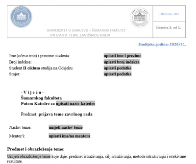PRIJAVA TEME ZAVRŠNOG RADA II CIKLUSA