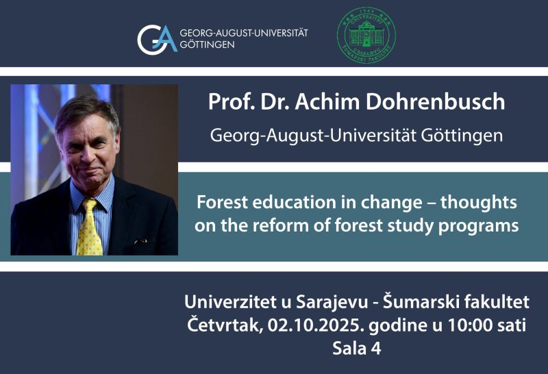 Šumarski fakultet Univerziteta u Sarajevu ima čast ugostiti prof. dr. Achima Dohrenbuscha sa Georg-August-Universität Göttingen, koji će održati predavanje pod…