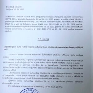 ODLUKA: Uspostavljanje radnog vremena na Šumarskom fakultetu